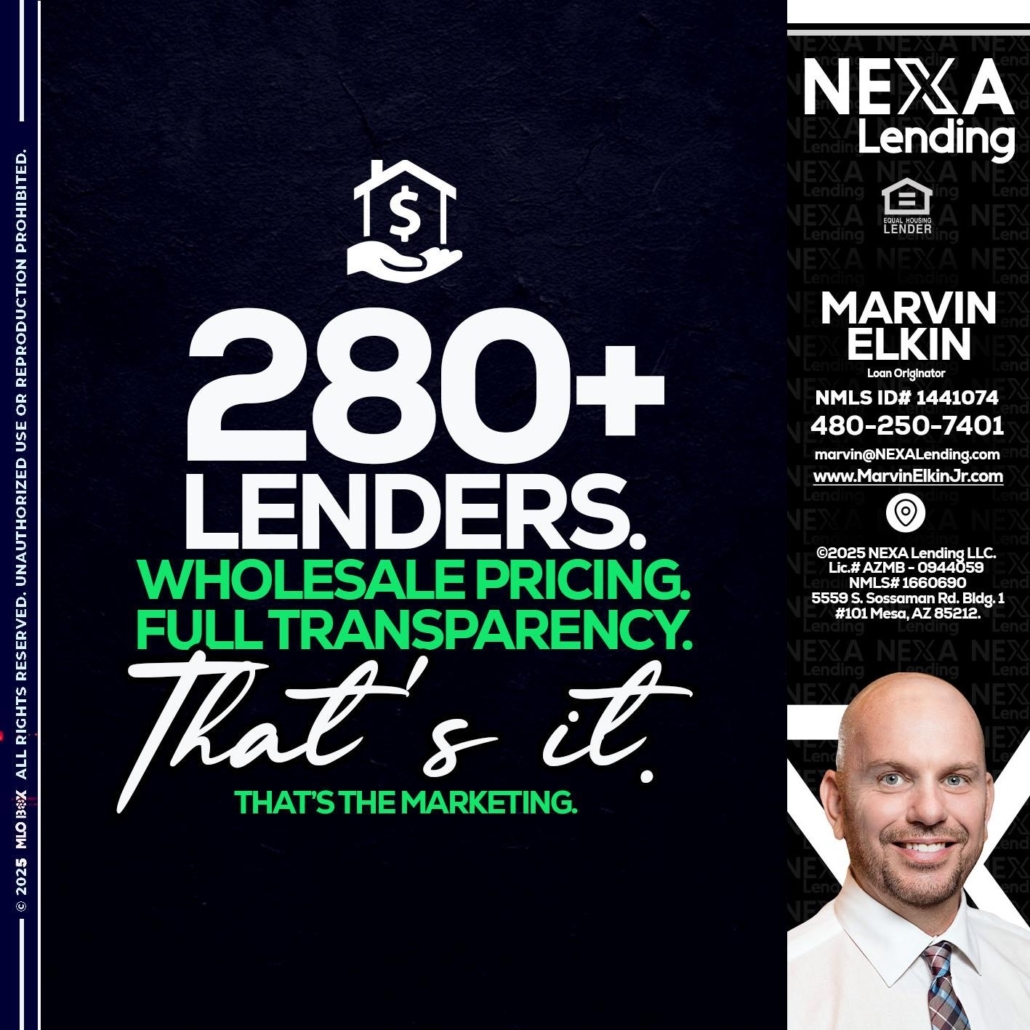Hi, my name is Marvin Elkin. I’m a Loan Officer with NEXA Mortgage LLC., offering personalized mortgage solutions, fast customized quotes, great rates and service with integrity.
