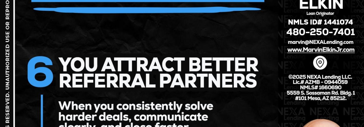 7 THINGS (6) - Marvin Elkin -Loan OriginatorHi, my name is Marvin Elkin. I’m a Loan Officer with NEXA Lending LLC., offering personalized mortgage solutions, fast customized quotes, great rates and service with integrity.