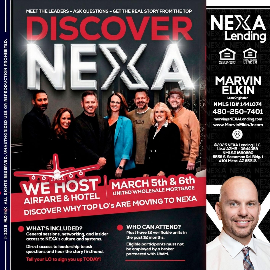 Hi, my name is Marvin Elkin. I’m a Loan Officer with NEXA Lending LLC., offering personalized mortgage solutions, fast customized quotes, great rates and service with integrity.