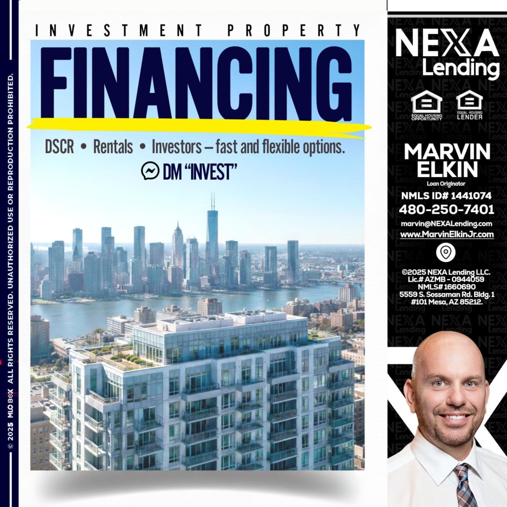 FINANCING - Marvin Elkin -Loan OriginatorHi, my name is Marvin Elkin. I’m a Loan Officer with NEXA Lending LLC., offering personalized mortgage solutions, fast customized quotes, great rates and service with integrity.