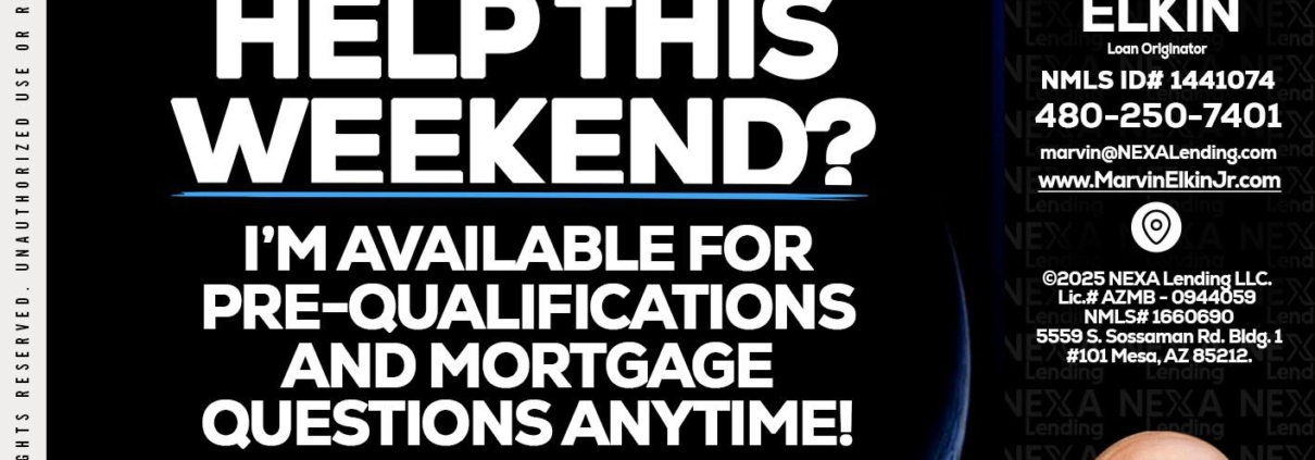 REAL ESTATE AGENTS - Marvin Elkin -Loan OriginatorHi, my name is Marvin Elkin. I’m a Loan Officer with NEXA Lending LLC., offering personalized mortgage solutions, fast customized quotes, great rates and service with integrity.