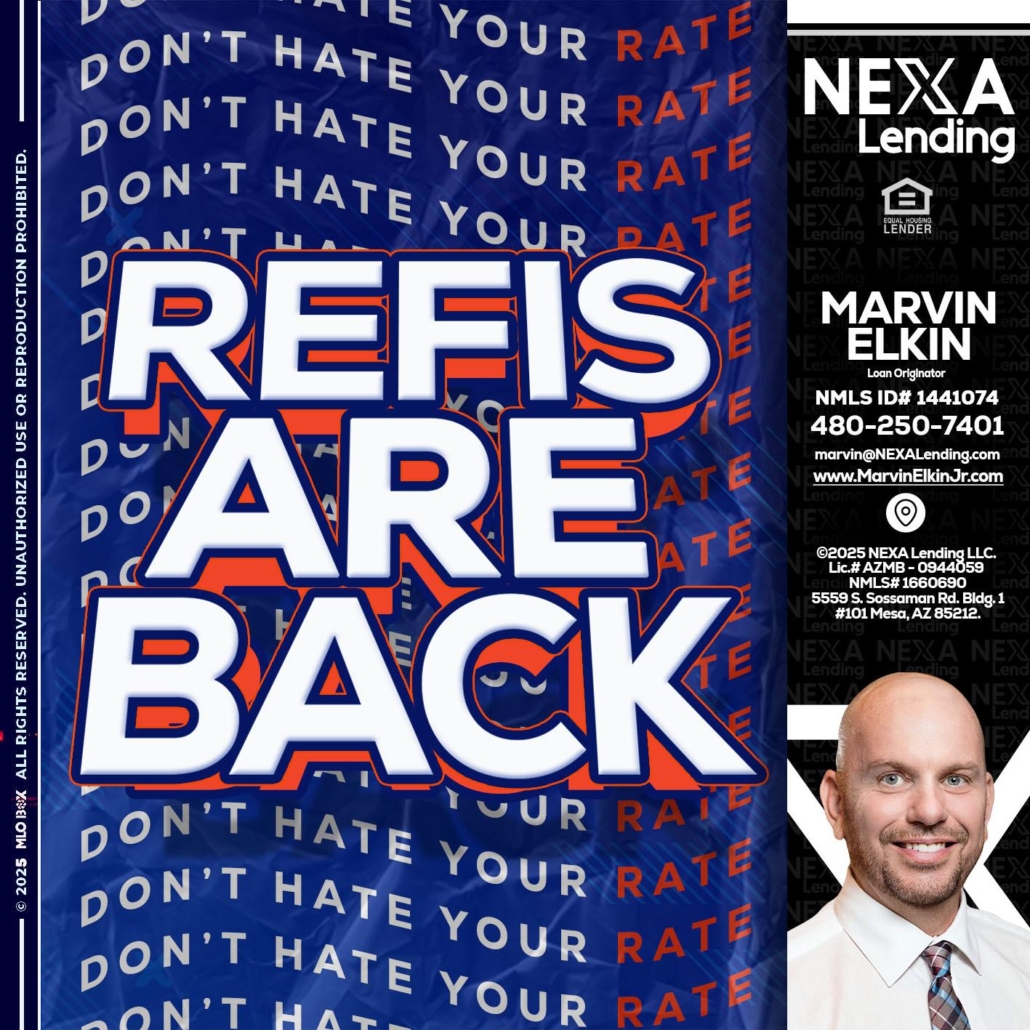 Hi, my name is Marvin Elkin. I’m a Loan Officer with NEXA Mortgage LLC., offering personalized mortgage solutions, fast customized quotes, great rates and service with integrity.