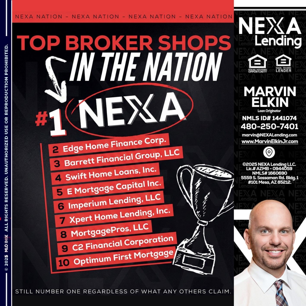 top broker - Marvin Elkin -Loan OriginatorHi, my name is Marvin Elkin. I’m a Loan Officer with NEXA Lending LLC., offering personalized mortgage solutions, fast customized quotes, great rates and service with integrity.