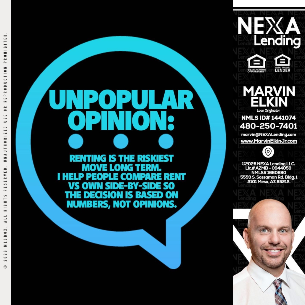 Hi, my name is Marvin Elkin. I’m a Loan Officer with NEXA Lending LLC., offering personalized mortgage solutions, fast customized quotes, great rates and service with integrity.