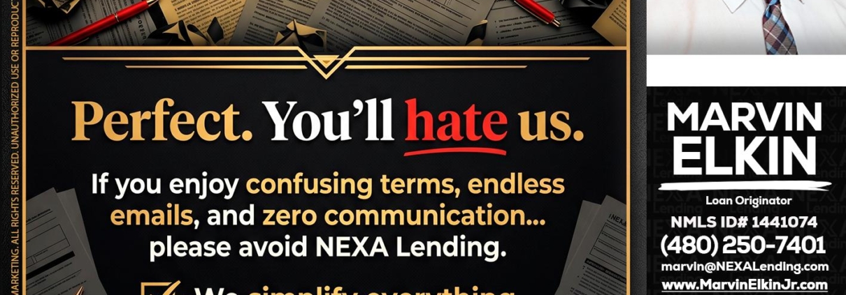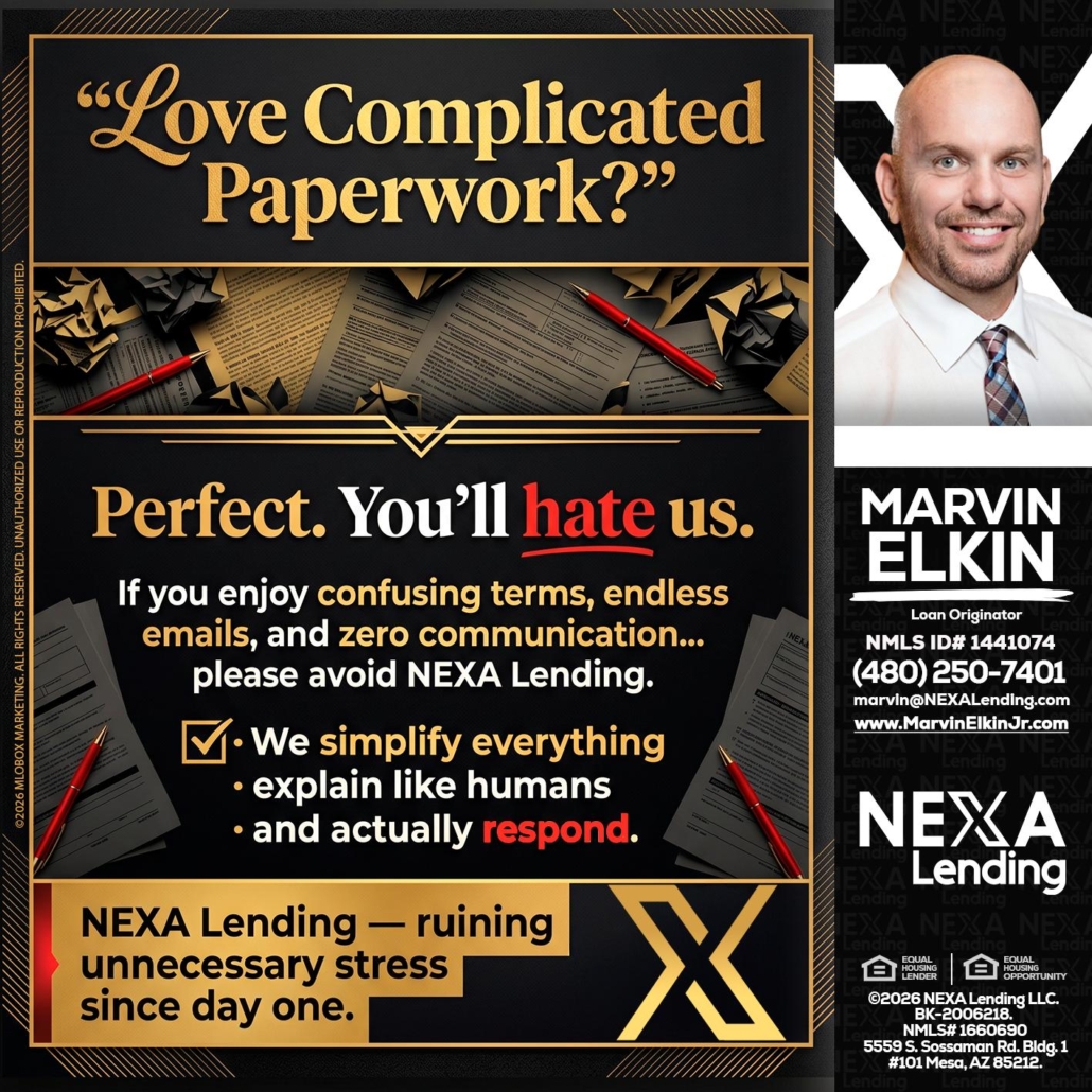 Hi, my name is Marvin Elkin. I’m a Loan Officer with NEXA Lending LLC., offering personalized mortgage solutions, fast customized quotes, great rates and service with integrity.